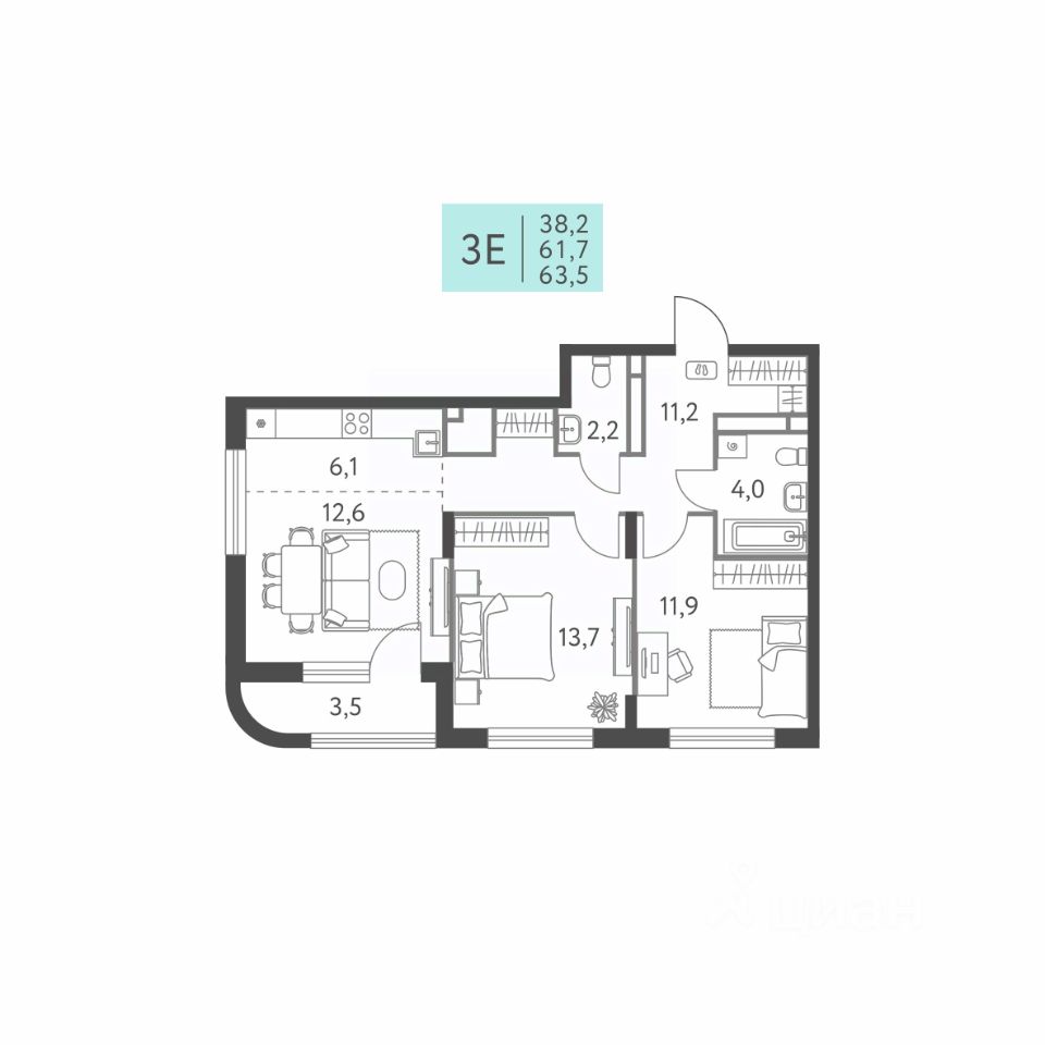 Общая площадь63,5 м²