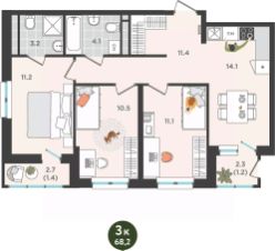 Общая площадь68,2 м²