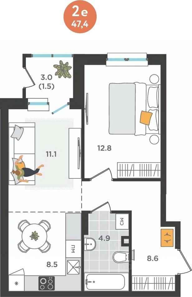 Общая площадь47,4 м²