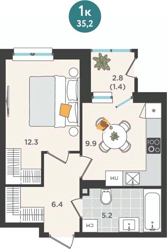 Общая площадь35,2 м²