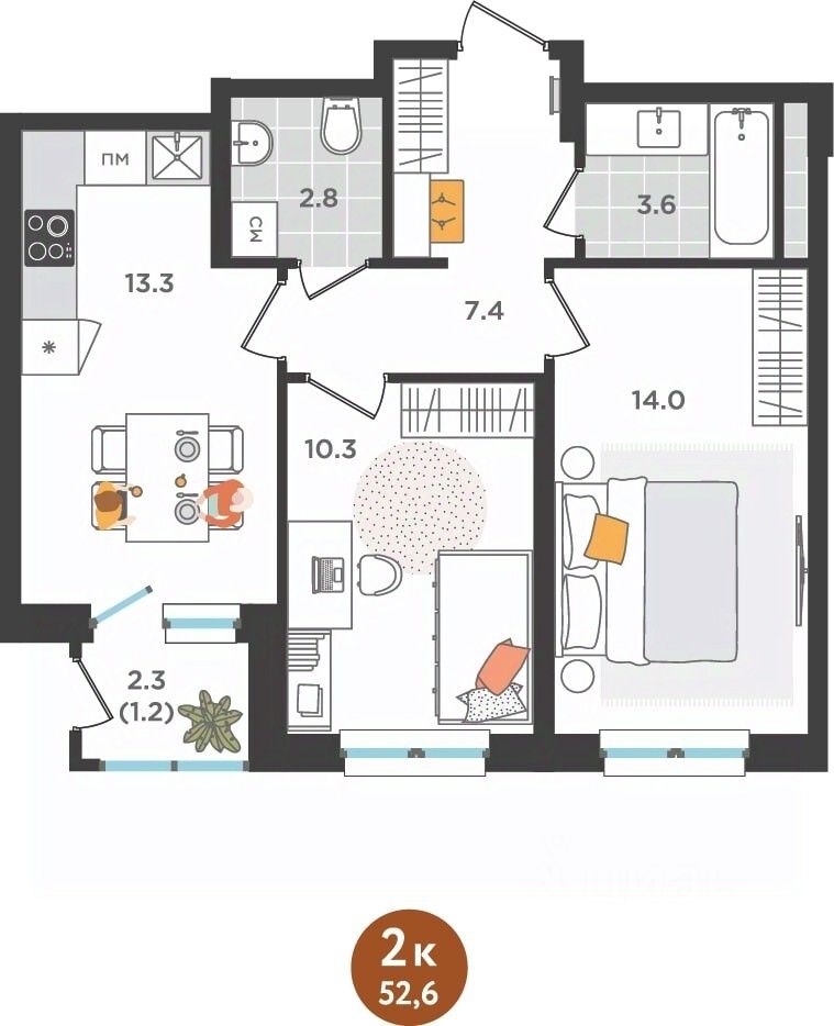 Общая площадь52,6 м²