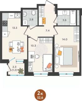 Общая площадь52,6 м²