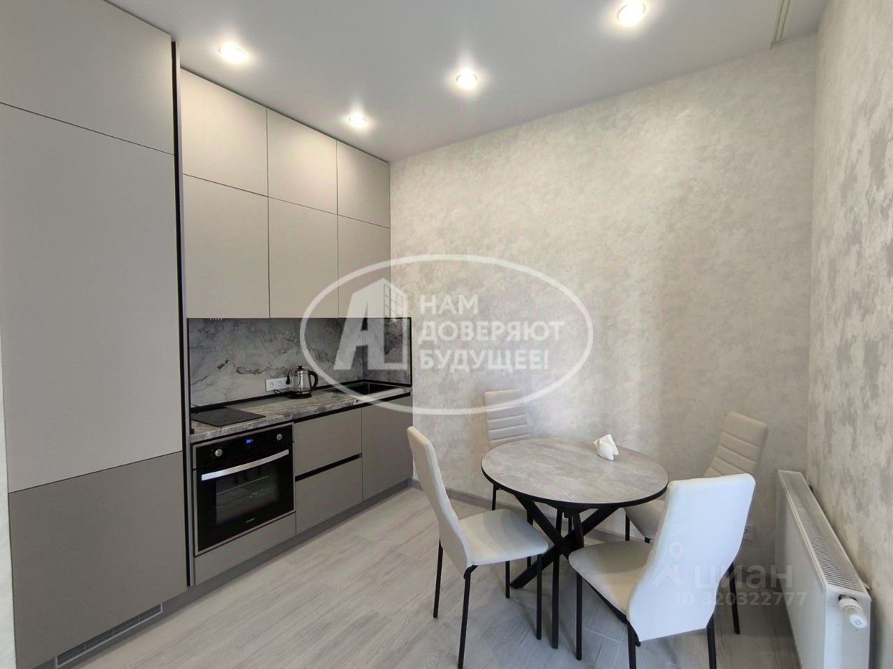 В квартире выполнена качественная чистовая отделка из материалов премиум-класса в нейтральных тонах.