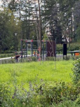 Во дворе детская площадка для игр и спортивных занятий.
