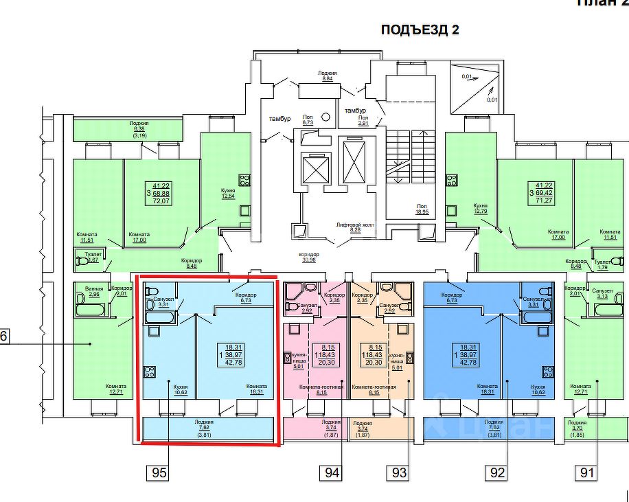 Дом выполнен полностью из кирпича! Кирпичные стены даже между соседями. Квартира общей площадью 38,9 м2 с большой лоджией 7,6 м2 на два окна!