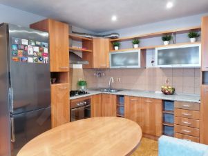 Квартира с хорошим ремонтом. Пол - ламинат, натяжные потолки. Санузел в кафеле. Остается кухонный гарнитур со встроенной техникой, водонагреватель. Огромный встроенный шкаф в гостиной во всю стену, также шкаф-купе в прихожей. По договоренности можем оставить остальную мебель: диван в гостиной, диван и стол на кухне, кровать и пр.
