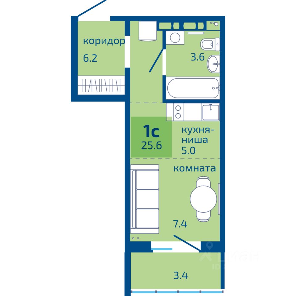 Общая площадь25,6 м²