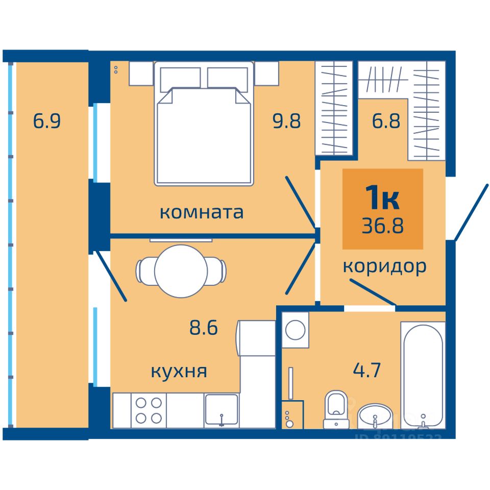 Общая площадь36,8 м²