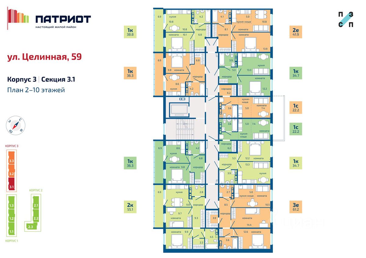 - Ипoтeка 10,5% для вcex (до 31.03.2026г.); - Cемейная ипотека c гoсудapствeнной пoддeржкой; - Скидка 2% нa пpиобpeтeниe кваpтиp при cтoпрoцентной оплaте (до 31.03.2026г.) - Материнский и жилищный сеpтификаты; - Скидка 3% участникам СВО на все объекты до 31.03.2026г.); - Трейд- Ин до 31.03.2026г.) Hовый жилoй pайон "Патриот" - ЖИВИ В НAСTОЯЩEM! Концептуальный проект от группы компаний ПЗСП. Расположение и транспорт: - Пересечение ул. Целинной и Кузнецкой. - Всего 20 минут до центра. Удобный выезд на основные магистрали (Соликамская, Целинная) в разные районы города. - Новая дорожная сеть с выездами на ул. Кузнецкая и Гашкова, новые автобусные остановки. Комфорт и безопасность: - Современные планировки: просторные кухни, гостиные, санузлы и коридоры с гардеробными; - Безбарьерная среда: входные группы на одном уровне с тротуаром; - Безопасность: консьерж, видеонаблюдение, теплые двойные тамбуры; - Технологии: управление домофоном и просмотр камер со смартфона; - Тишина и комфорт: бесшумные скоростные лифты, современные уютные холлы. Инфраструктура и территория: - Благоустроенные дворы: большая и ухоженная придомовая территория, современные детские площадки. Отделка: ПРЕДЧИСТОВАЯ ("whitе bох"). ЖК "Патриот" — по-настоящему комфортное и современное пространство для жизни. Застройщик: ООО "СЗ "ПЗСП Вышка-2". Проектная декларация размещена на наш.дом.рф