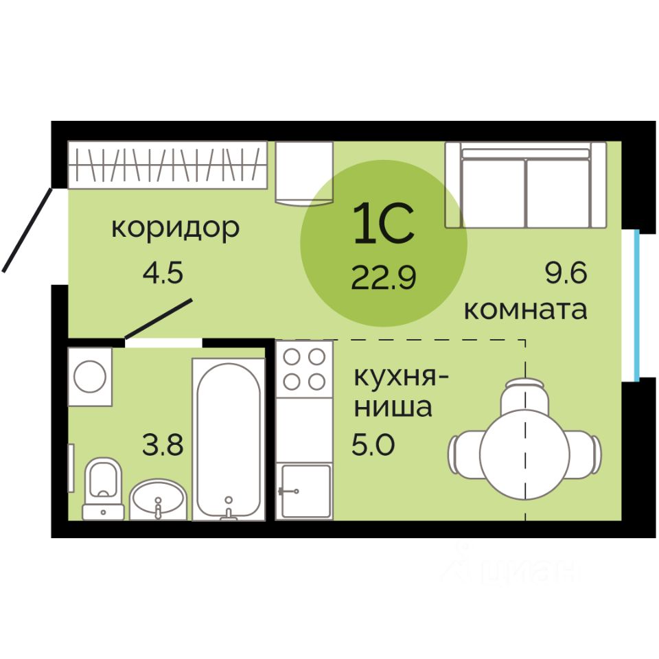Общая площадь22,9 м²