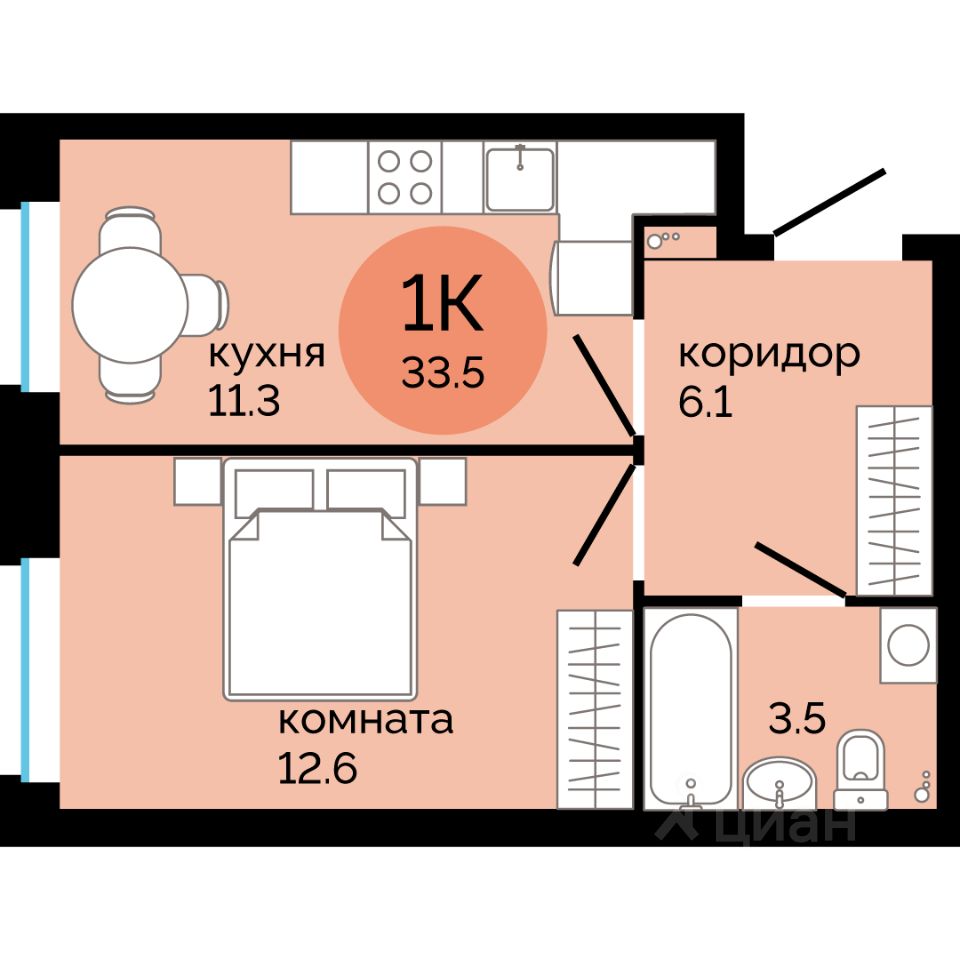 Общая площадь33,5 м²