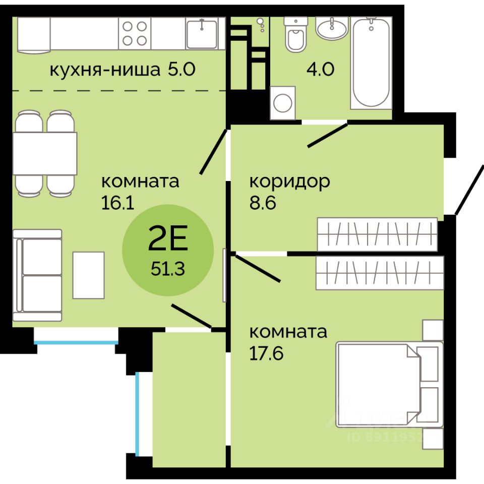 Общая площадь51,3 м²