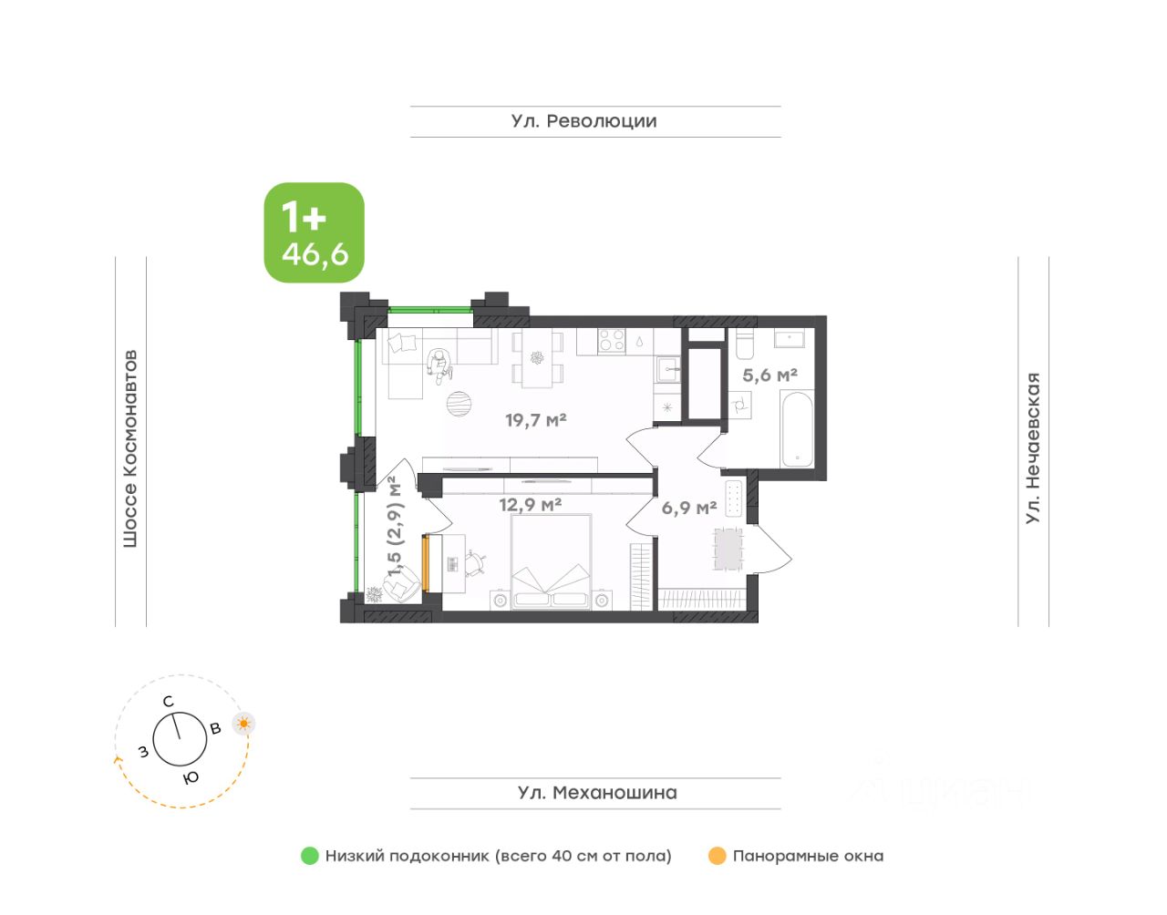 46,6 м²