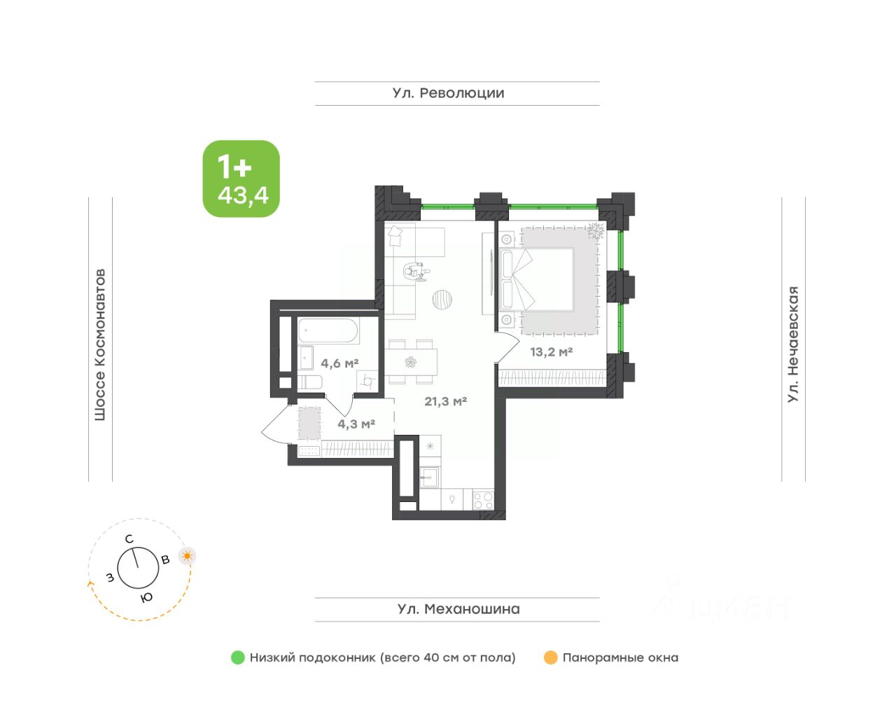 43,4 м²