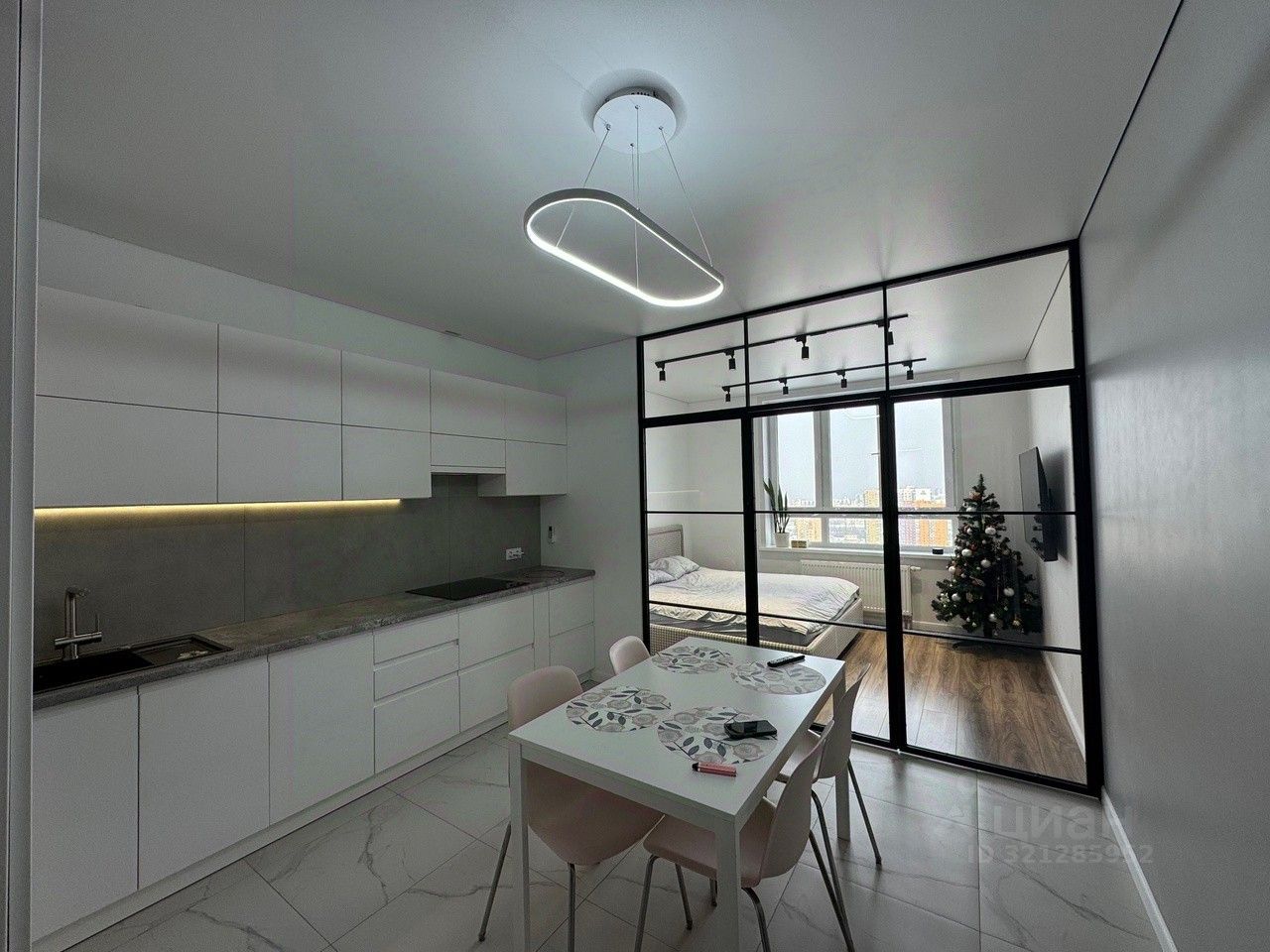 В квартире остается кухонный гарнитур вместе со встроенной техникой (индукционная плита, посудомойка, микроволновка, духовой шкаф, холодильник)