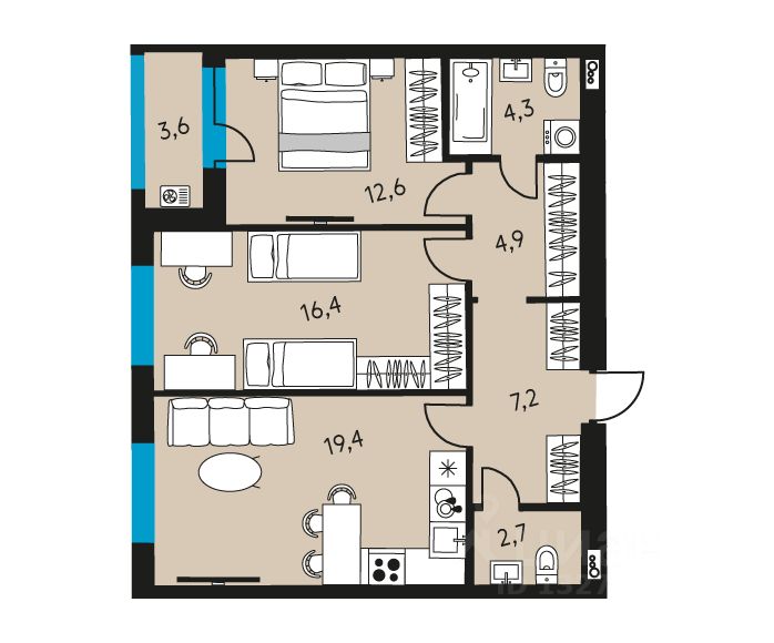 3-комнатная квартира 663