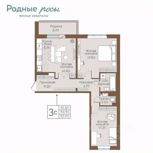 Общая площадь67,2 м²