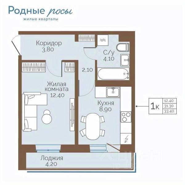 Общая площадь33,4 м²