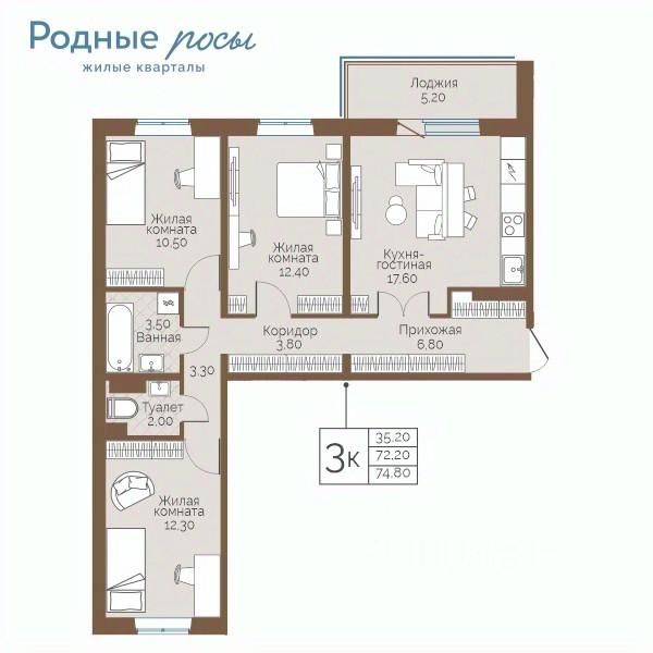 Общая площадь74,8 м²