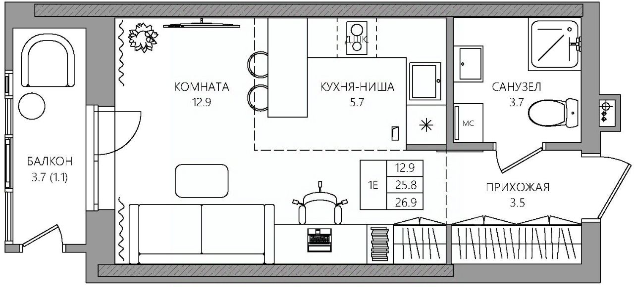 Общая площадь26,9 м²