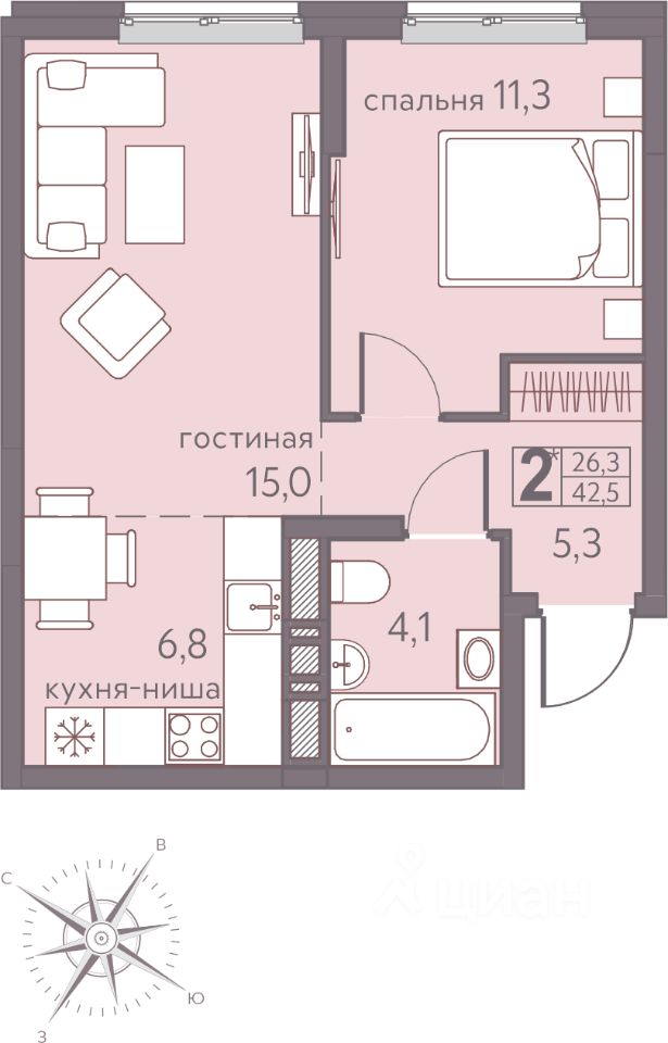42,5 м²