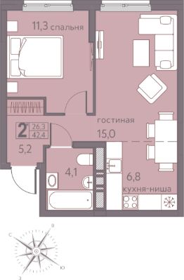 42,4 м²