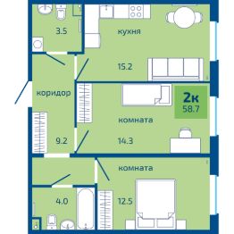 Общая площадь58,7 м²