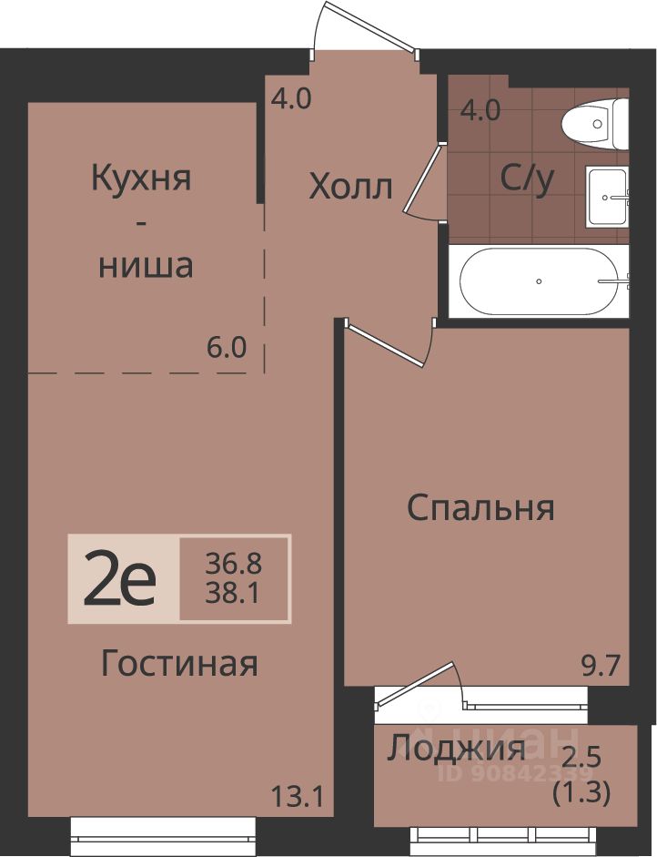 Общая площадь38,1 м²