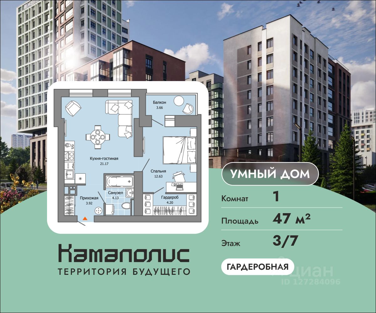 В новом жилом комплексе комфорт+ класса "Камаполис", расположенном на берегу реки Камы, продается 1-комнатная квартира площадью 47.00 кв. м. Квартира находится в 4 доме. Девелопер проекта - "Железно".