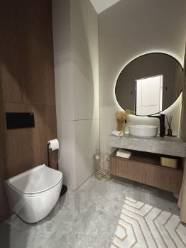 Абсолютно новая квартира с выполненным с качественно дизайнерским проектом, современные формы и дорогие материалы.