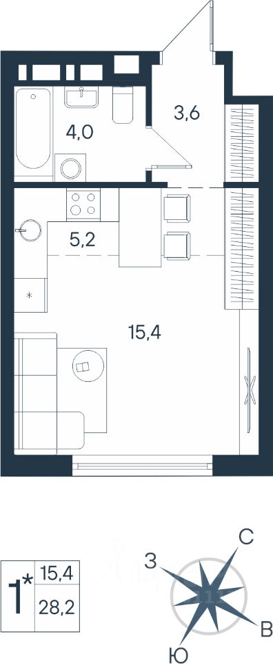 15,4 м²