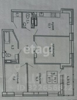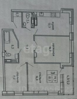 Общая площадь - 79,1 кв.м.