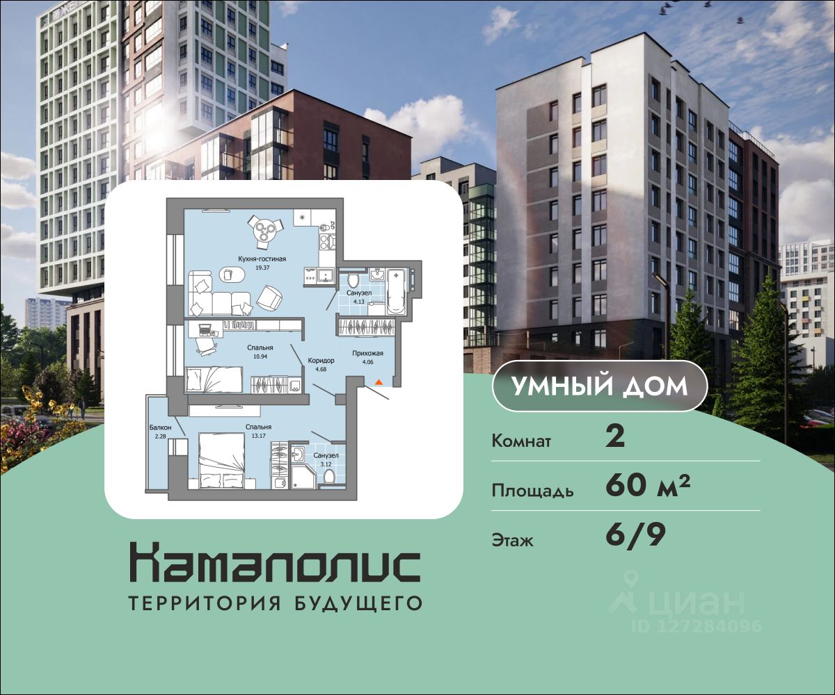 В новом жилом комплексе комфорт+ класса "Камаполис", расположенном на берегу реки Камы, продается 2-комнатная квартира площадью 60.00 кв. м. Квартира находится в 4 доме. Девелопер проекта - "Железно".