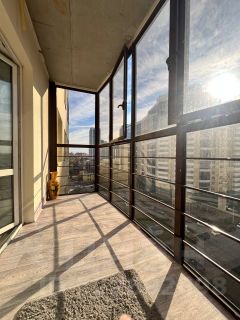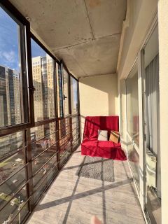 Большая лоджия с панорамным остеклением обеспечивает прекрасный вид на город с высоты птичьего полета. Здесь можно оборудовать уютную зону отдыха, и после насыщенного дня, наслаждаться тишиной и спокойствием окружающего пространства.