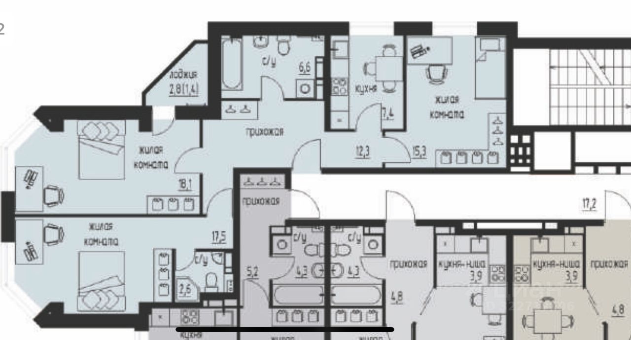 • Уникальная планировка с эркером, лоджией, изолированными комнатами и конечно 2-мя санузлами