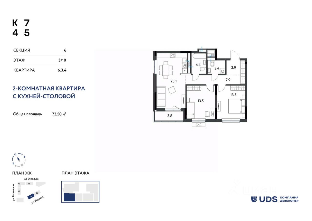 Квартал 745 это пространство, где удобно жить и расти. Безопасный двор без машин, соседский центр, двухуровневый паркинг и современные коммерческие пространства все, что нужно семье для комфорта.