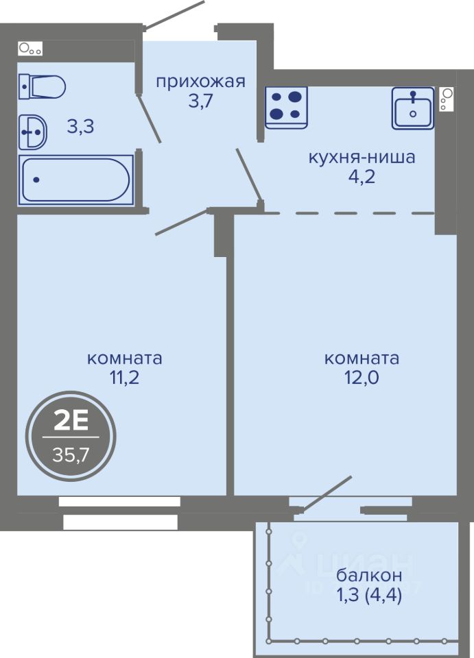 Общая площадь35,7 м²
