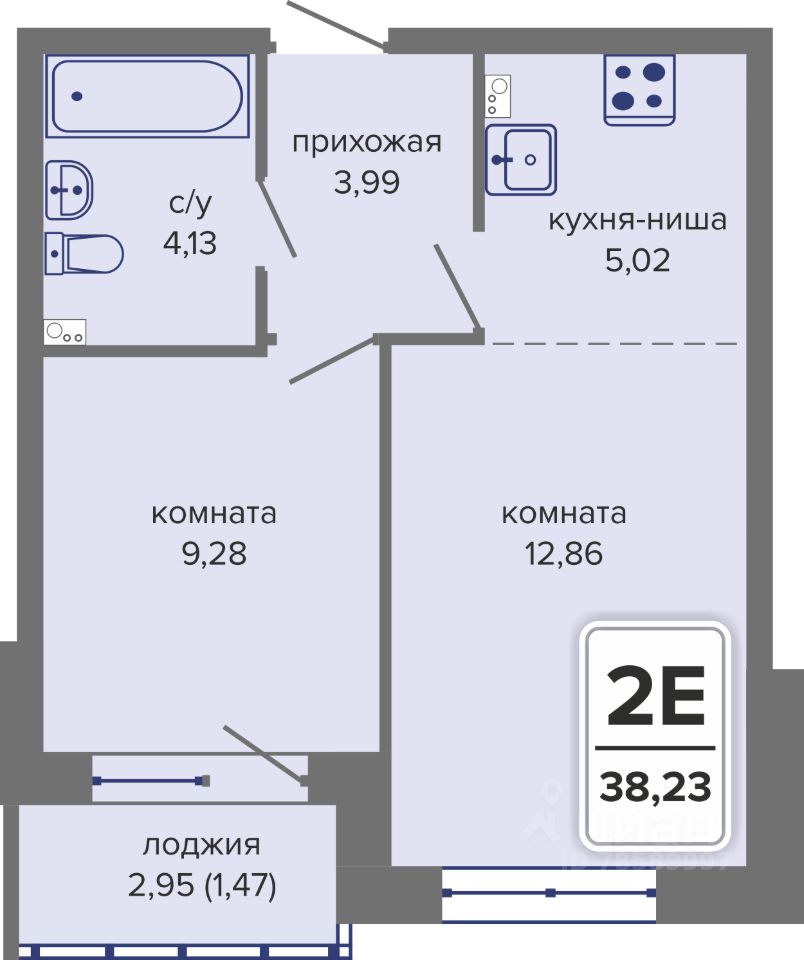 Общая площадь38,23 м²
