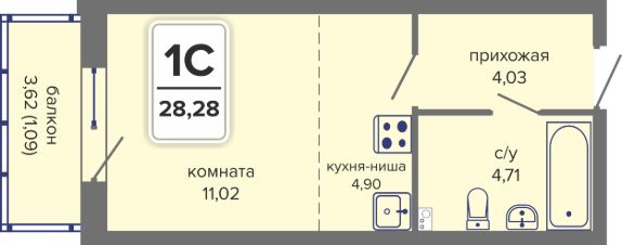 Общая площадь28,28 м²