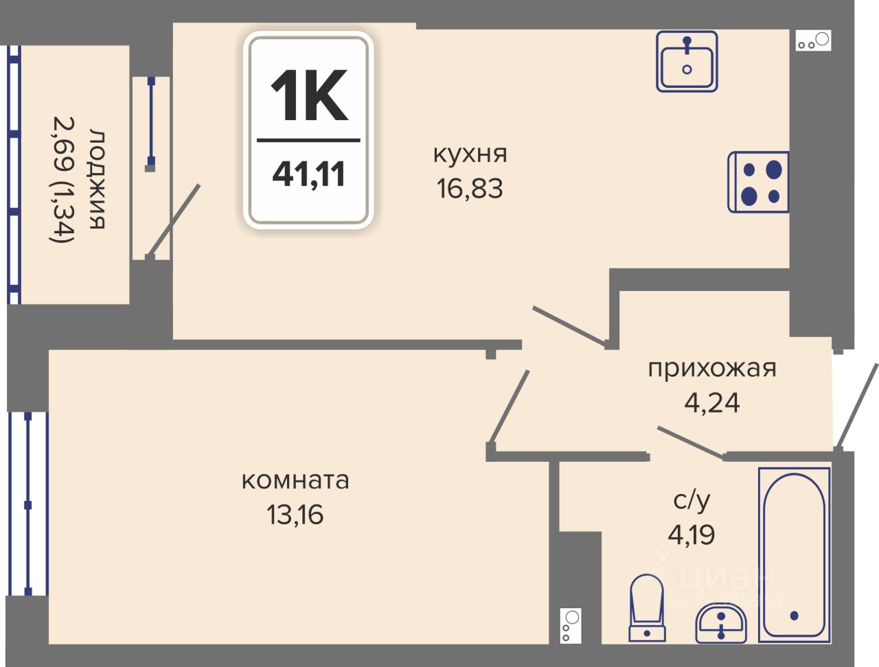 41,11 м²