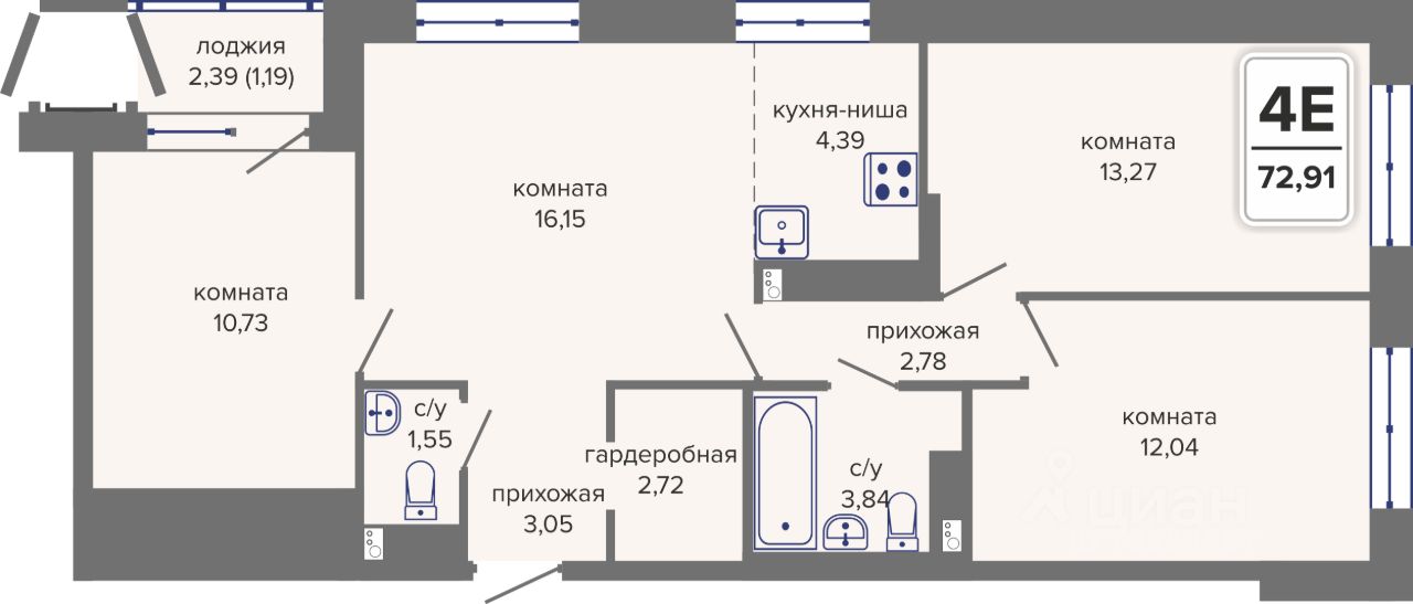 72,91 м²