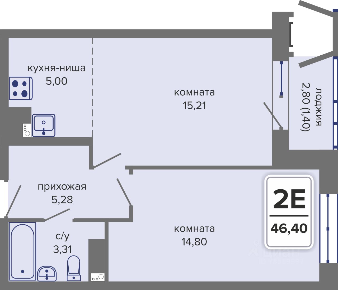 Общая площадь46,4 м²