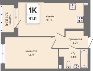 Общая площадь41,11 м²