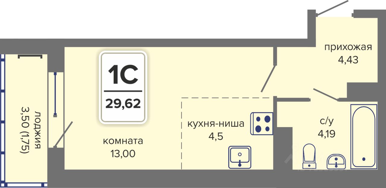 Общая площадь29,62 м²