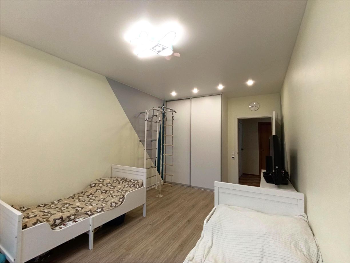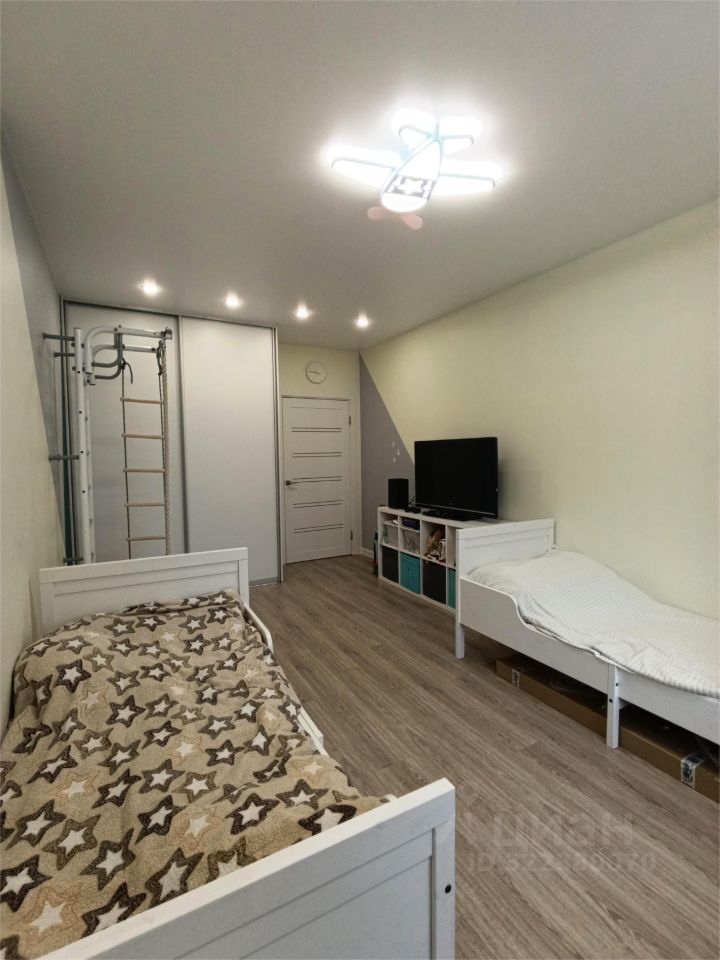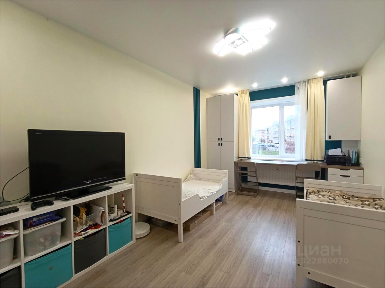 В квартире выполнен хороший косметический ремонт: окна - стеклопакеты, пол - линолеум, в детской - пвх плитка (электрический теплый пол), потолок - частично побелка, в детской и санузле - натяжной, в ванной - кафель, электрический теплый пол, балкон застеклен, хорошая входная дверь.