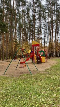 Отдельное внимание к благоустройству: приватная ухоженная территория дома с новой детской площадкой и лавочками среди сосновых насаждений — тишина и спокойствие. По периметру просторная парковочная зона.