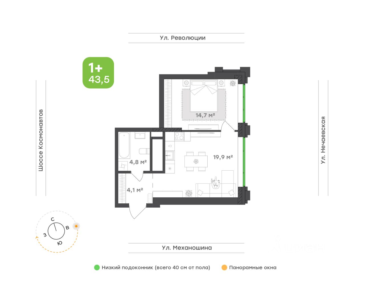 43,5 м²