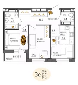 Продается 3- комнатная квартира N 717 в ЖК Утро.