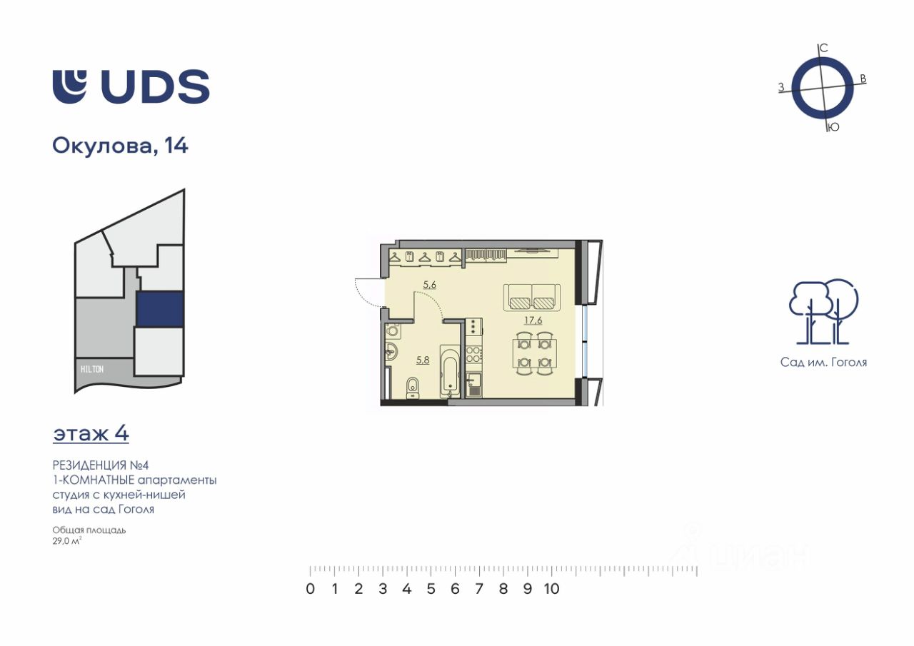 Видовые апартаменты-студия 29,88м2 МФК Окулова 14 от UDS.