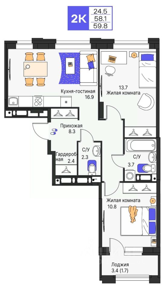 • Большой выбор планировок от студий до квартир с террасами